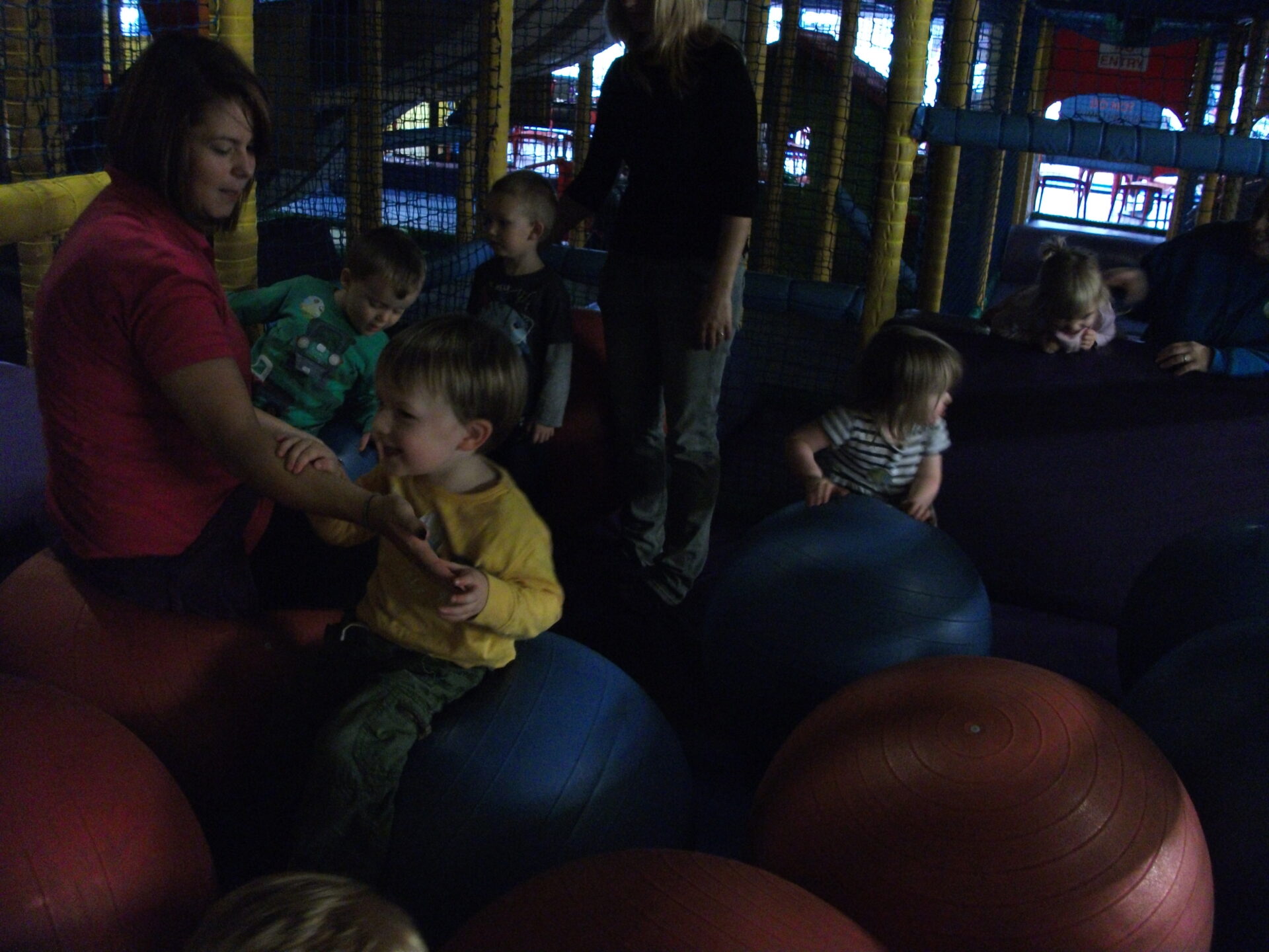 As soon as snack was done, off they whizzed with squeals of laughter soon following after!! The big bouncy exercise balls were a definite favourite, even the staff had a good old bounce on them!